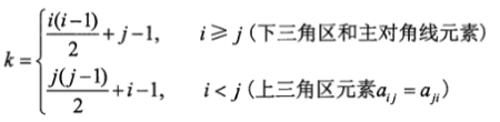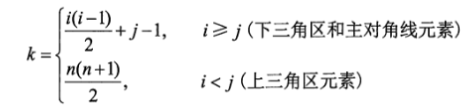 - 三角矩阵:上三角区或者下三角区元素均为同一常量(图为下三角矩阵对应存储关系)