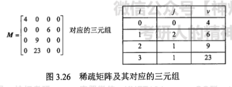 ,当|i-j|>1时, ;由此得出对应的一维矩阵下标 - 稀疏矩阵:矩阵中非零元素的个数t,相对于矩阵元素的个数s来说非常少。对此,将非零元素及其相应的行和列构成一个三元组。