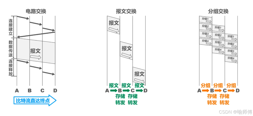 | 电路交换 | 报文交换交换 | 分组交换 | |