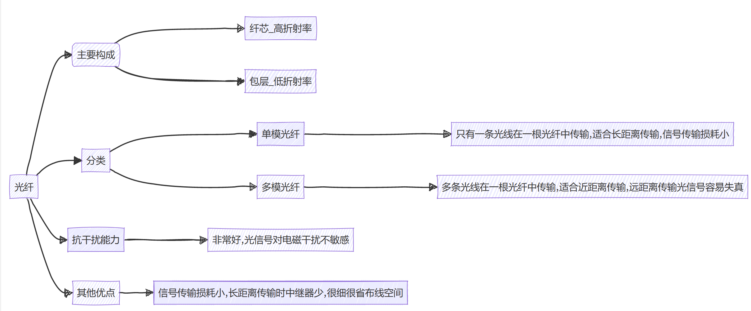 - 无线电波:穿透能力强、传输距离长、信号指向性弱(手机信号、WiFi)