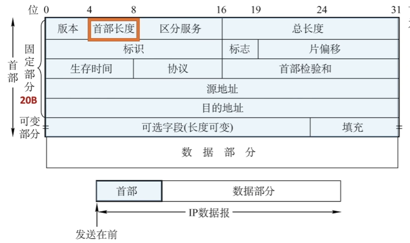片偏移:指出较长分组分片后,某片在原分组中的相对位置。以8B为单位。