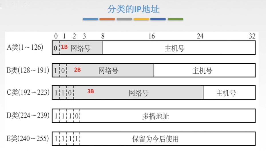 | 网络类别 | 最大可用网络数 | 第一个可用的网络号 | 最后一个可用的网络号 | 每个网络的最大主机数 |