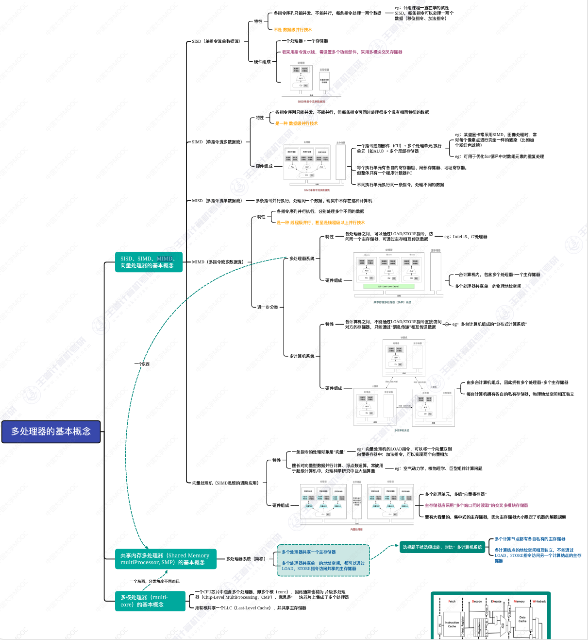 - 超长指令字:由编译程序挖掘出指令间潜在的并行性,将多条能并行操作的指令组合成一条具有多个操作码字段的超长指令字(可达几百位),采用多个处理部件